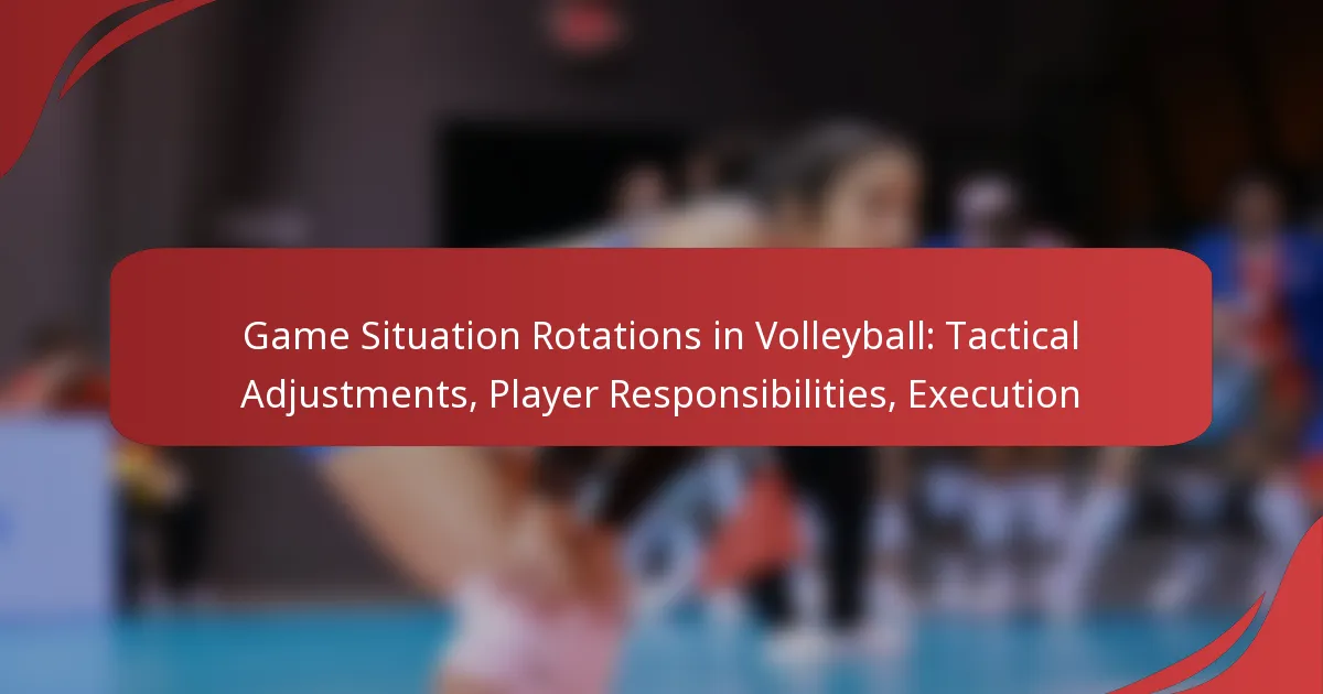 Game situation rotations in volleyball are essential for teams to adapt their strategies based on the dynamics of the match. By making tactical adjustments, teams can optimise player positioning and enhance execution, ensuring that each player’s specific responsibilities align with the overall game plan. Understanding these rotations and roles is vital for maximising performance and exploiting opponents’ weaknesses.
